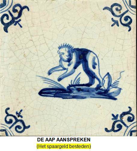Er zijn veel uitdrukkingen in de Nederlandse taal die gebaseerd zijn op het gedrag van en dier. Die afbeeldingen liepen synchroon met het wisselende taalgebruik tot vandaag de dag, die samen het totaal plaatje van het Hollandse gebeuren vormden. Al in 1599 schilderde Pieter Bruegel de Oude een groot olieverfschilderij over Nederlandse spreekwoorden.(Museum Boijmans) Het bijzondere is dat het schilderij ten minste 125 Nederlandstalige spreekwoorden en gezegdes toont zoals die destijds gangbaar waren in het Nederlands. Een flink aantal uit die tijd wordt tegenwoordig nog steeds gebruikt, want wie spaart die heeft wat voor later…