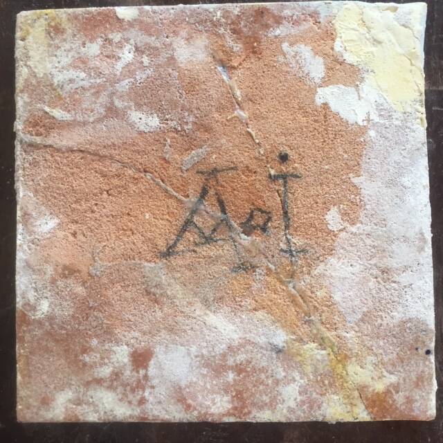 proefschildering. Deze tegel is aangetroffen in de kelder onder de fabriek van de SWAEN.