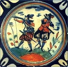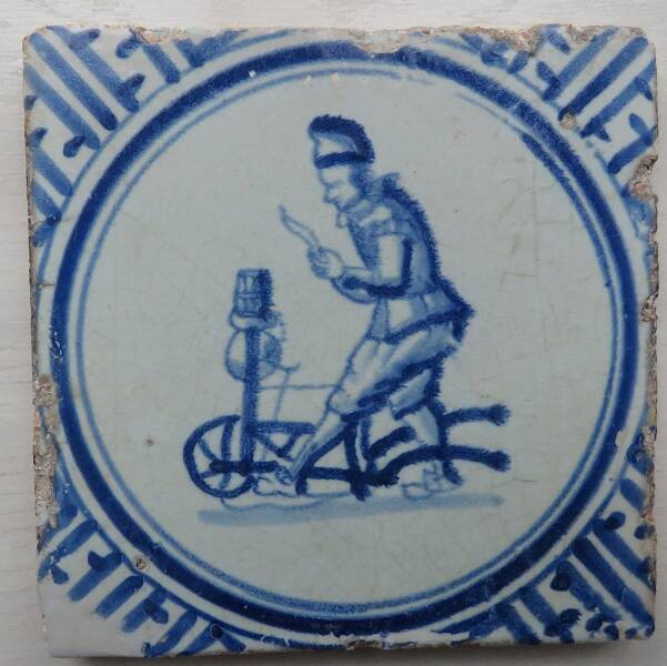 Tegels met man met scharensliep. 17e eeuw