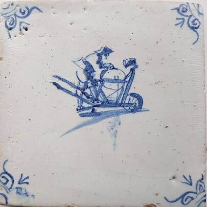 Tegel met een kuiper. 17e eeuw