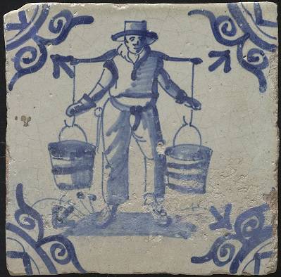 Toeval of niet maar het merendeel van de tegels met de voorstelling van juk dragende mensen met emmers betreffen vrouwelijke personen. Deze tegels staan bij de tegelverzamelaars bekend als melkmeisjes. Maar er zijn ook tegels waarop een mannelijk persoon met juk en emmers staan afgebeeld, maar die zijn in de minderheid.