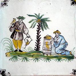 Tegels met Chinese personen. 18e eeuw. Frankrijk?