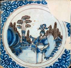 Tegel met Chinese persoon.Periode 1650-1700. Mexico.