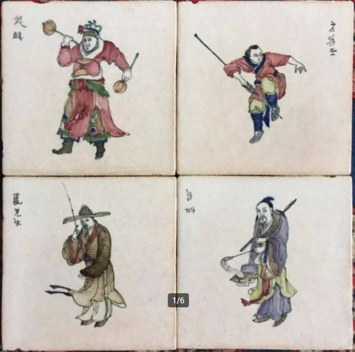 In musea, op veilingen en particuliere verzamelingen zijn Chinese tegels later gevoelsmatig in een vierpas of meer, weer bij elkaar geplaatst als dat kon. Ook komen er meerdere aantallen voor met de mooie “Chinezen tuinen” die wij een andere keer zullen behandelen. Tevens komen er soms grotere tableaus voor met een complete Chinese vertelling in de 18e eeuw gemaakt. Deze hebben prachtige heldere kleuren en vormgeving met mystiek gepenseelde voorstellingen van rituelen en draken. Het zijn vaak wat duurdere tegels of tableaus, je hebt er wel enige ‘Ping-Ping’ voor nodig…