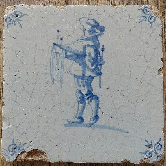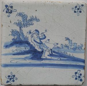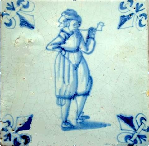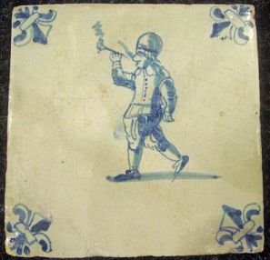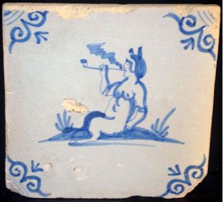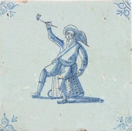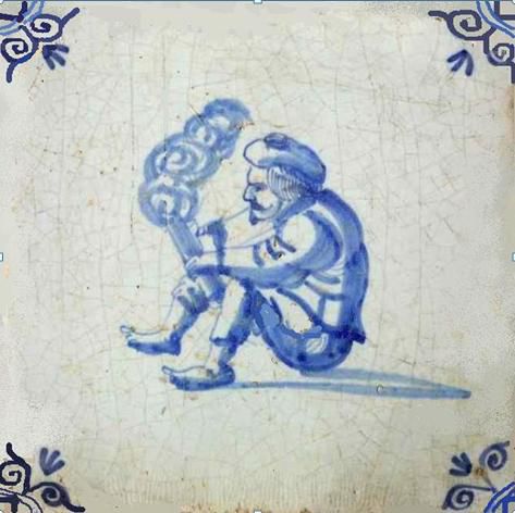 Kwadraattegel met een pijprokende man. Omstreeks 1600.