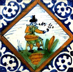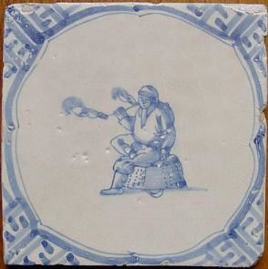 Pijprokers op antieke tegels