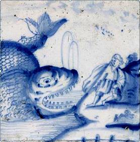Bijbels: Jona(s) in de walvis op antieke tegels