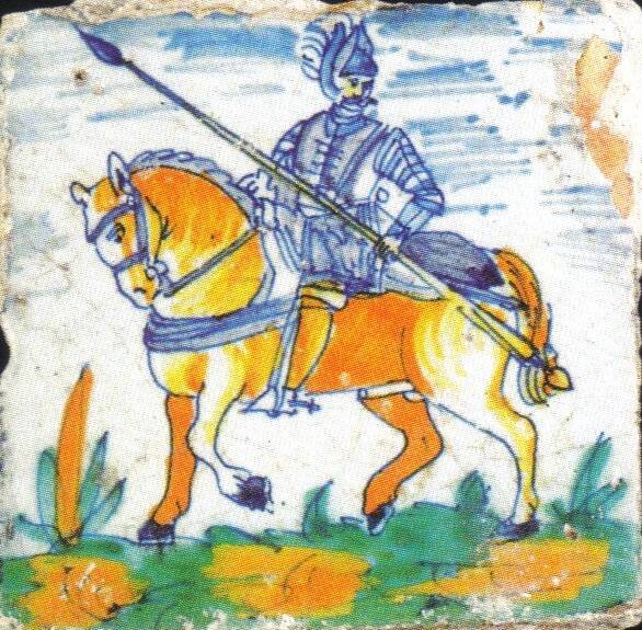 Tegel met een ridder te paard. Ca. 1600