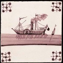 19e eeuwse tegel met een (stoom)raderboot. Op de tegel