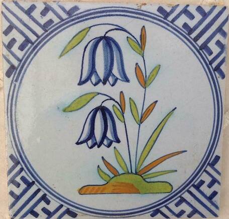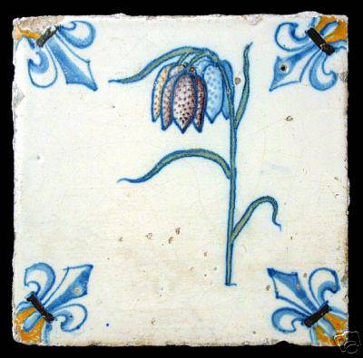 Fotoalbum: Kievitsbloemen op antieke tegels met drie bloemen, 17e eeuw