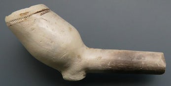Kleipijp (AK). Dubbelconisch. Hielmerk: Tulp. Gouda. Midden 17e eeuw.