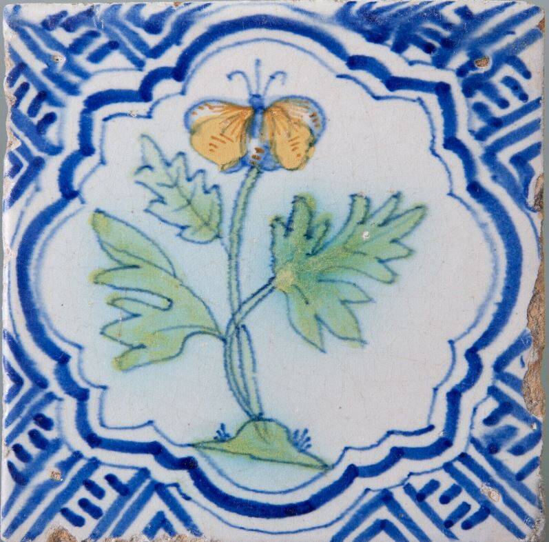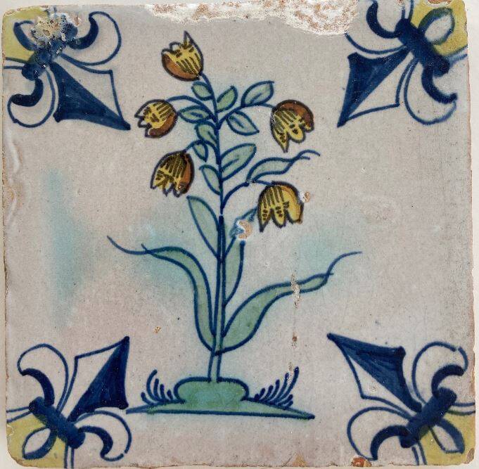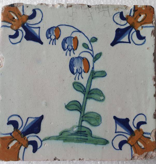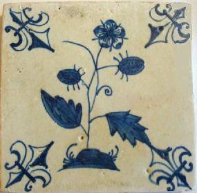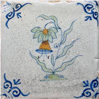 Vele antieke tegels met bloemen zijn ons bekend. Prachtige exemplaren uit de zestiende tot het einde van de zeventiende eeuw uitgevoerd in hoofdzakelijk kleuren en heel soms een vroeg exemplaar in alleen blauw. Deze tegels zijn gedurende de periode van 1610 tot 1680 in massa geproduceerd. Het merendeel ontstond tussen 1630 en 1670 maar tussentijds lieten ook rond het begin van de tweede helft van de zeventiende eeuw de fraaie enkel in blauw gepenseelde exemplaren zich steeds meer vertegenwoordigen.