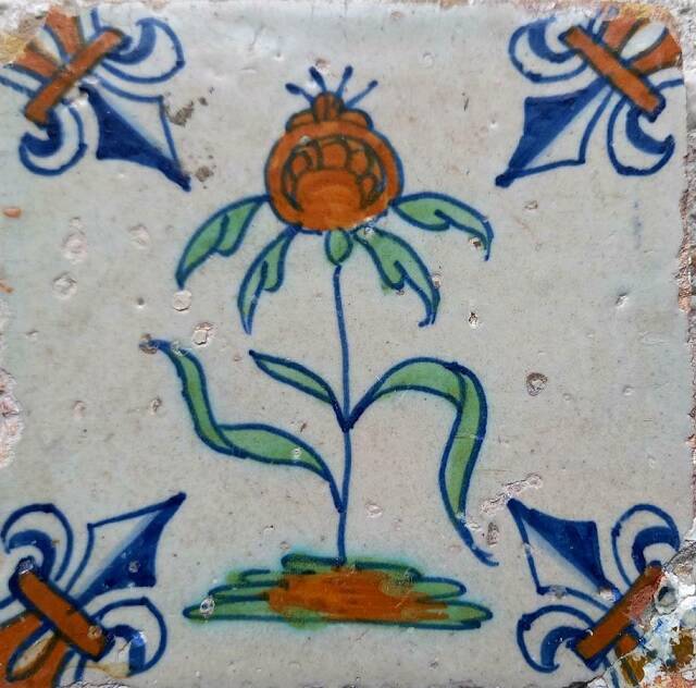 Twee uiterst zeldzame bloemtegels 17e eeuw