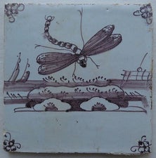 De hiernaast geplaatste fraaie 17e eeuwse kwadraattegel met de afbeelding van een vliegend insect is opvallend, en wel omdat de vleugels en voelsprieten niet specifiek van een libel zijn maar er eerder op duiden dat het hier een dag- of nachtvlinder betreft.