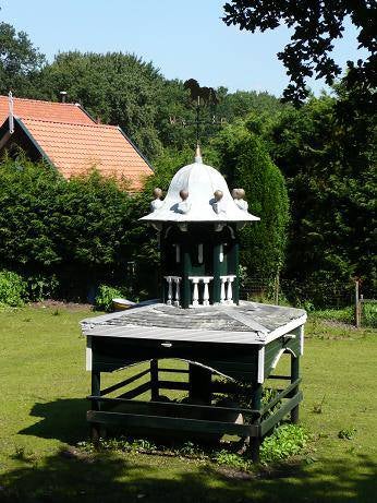 Geen duiventil maar een kooi waar tortelduiven (ook wel lachduiven genoemd) in werden gehouden.Deze kooi hangt