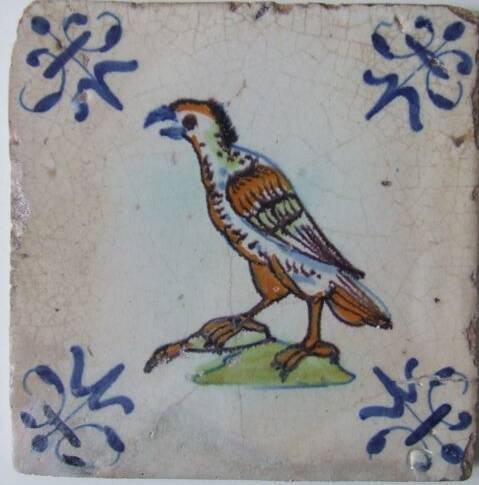 Zeldzame tegel met de voorstelling van een gier. 17e eeuw.