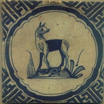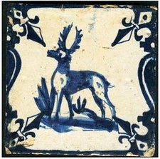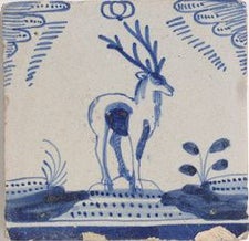 Edelherten op antieke tegels, 17e t/m 20 eeuw eeuw, blauw (1)
