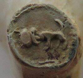 Kleipijp (lade5FM057). Pijptype: Ovoide. Hielmerk: Hond in de pot. Gouda. 1753 - 1759. Pijpenmaker: Jan Boms.