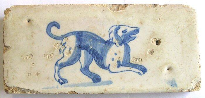 Honden op antieke tegels, eind 16e/17e eeuw, polychroom(1)