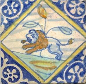 Fotoalbum: Mannelijke leeuwen op antieke tegels, 17e eeuw, polychroom